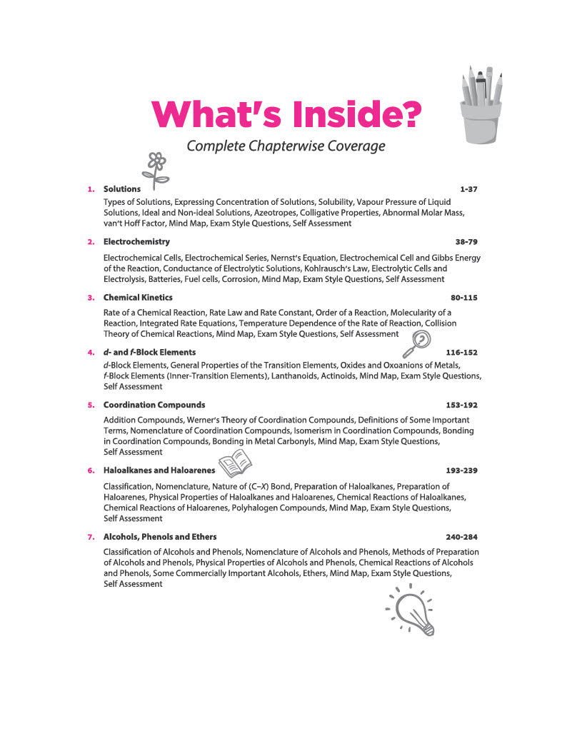 This book stands out as a complete learning solution for Class 12 Chemistry students. It balances theory, practice, and assessment in a structured manner, making it easier to understand concepts and apply them effectively. With features like mind maps, sample papers, and chapter-wise evaluation, it supports both preparation and revision. Its alignment with the latest CBSE syllabus ensures relevance, while its practice-oriented approach helps students build confidence for exams.