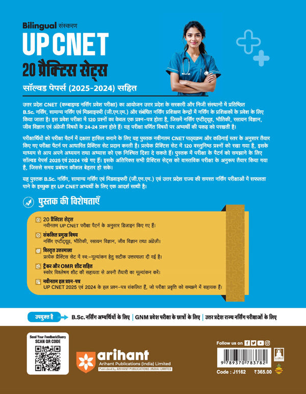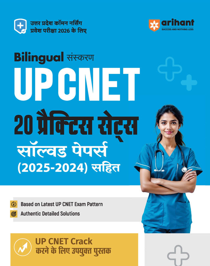 UP CNET 20 Practice Sets & Solved Papers is a comprehensive study resource designed for aspirants preparing for the Uttar Pradesh Common Nursing Entrance Test (UP CNET) for the session 2026. Bilingual in approach, the book blends practice-oriented content with authentic solutions, offering targeted preparation for this state-level nursing entrance exam.