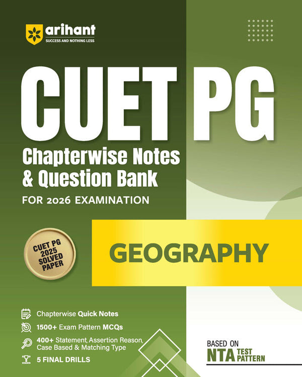 CUET PG 2026 Geography | Chapterwise Notes & Question Bank | Based on NTA Pattern | 1500+ Exam Pattern MCQs, Assertion Reason & Case-Based Questions | Quick Revision Notes | 5 Final Drills | Solved Paper 2025