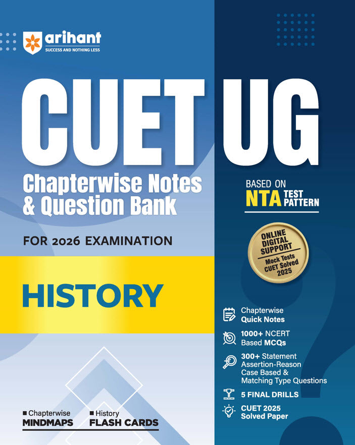 CUET UG 2026 History | Chapterwise Notes & Question Bank | Based on NTA Pattern | 1000+ NCERT MCQs, Assertion Reason & Case-Based Questions | Chapterwise Mindmaps & Flash Cards | Free Online Digital Support