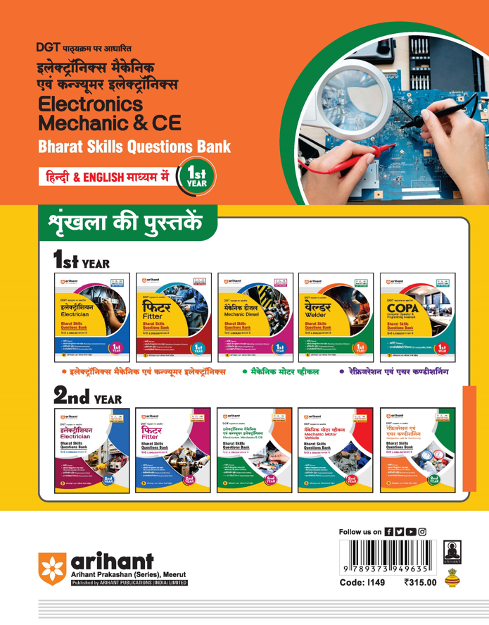 A bilingual (Hindi & English) DGT-based question bank for Electronics Mechanic & Consumer Electronics (CE)-1st Year, designed to strengthen exam preparation through skill-oriented and CBT-pattern questions.
