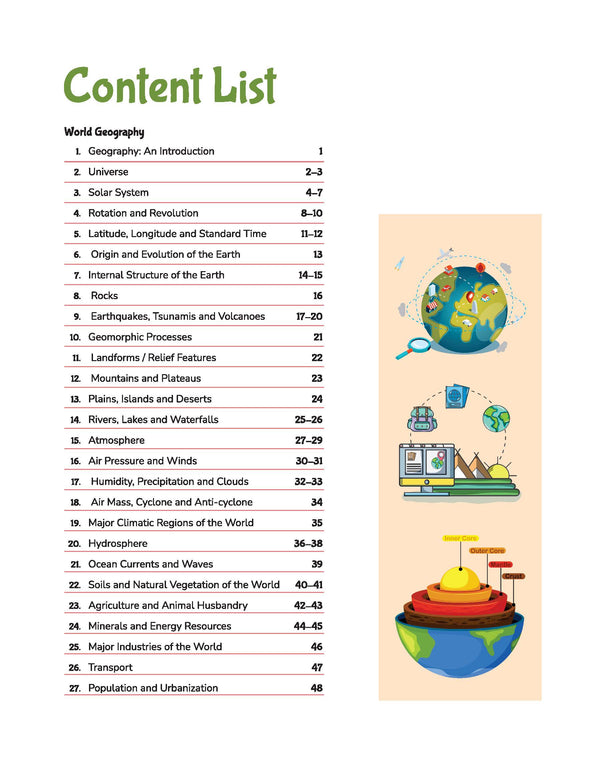 - Complete Geography Syllabus Coverage – Covers physical, Indian, and world geography, including important facts, diagrams, maps, and key points relevant for multiple exams.