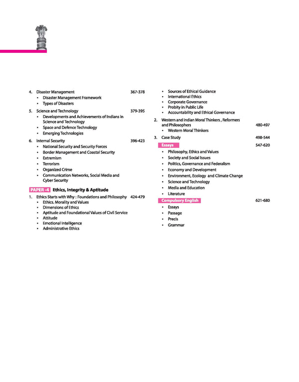 - Chapterwise Solved Papers: This book provides chapterwise solved papers for General Studies (Paper I-IV), Essays, and Compulsory English. Each chapter is broken down into individual sections, making it easier to focus on specific topics.