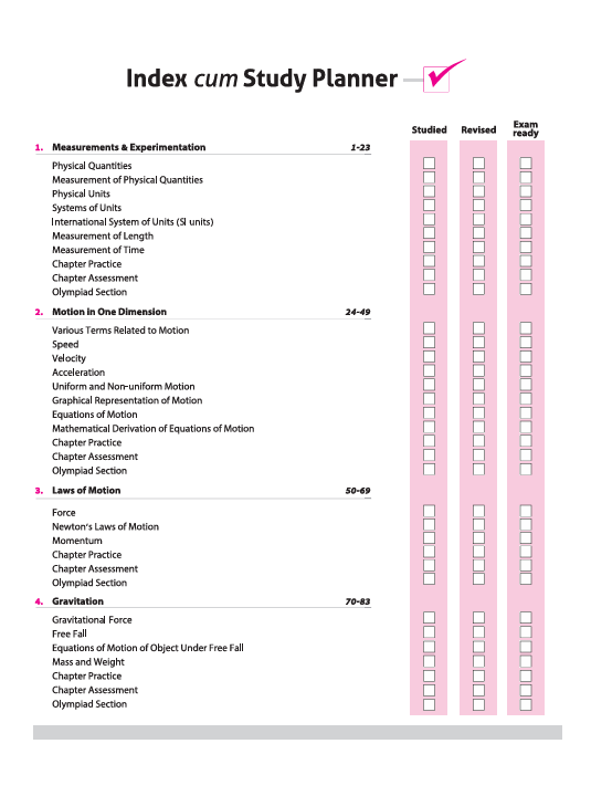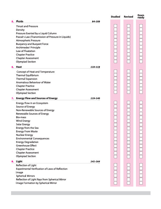 Measurements & Experimentation, Motion in one Dimension, Laws of Motion, Gravitation, Fluids, Heat, Energy Flow and Sources of Energy, Light, Sound, Current Electricity, Magnetism, Explanations to Olympiad, Internal Assessment of Practical Work, Sample Question Papers
