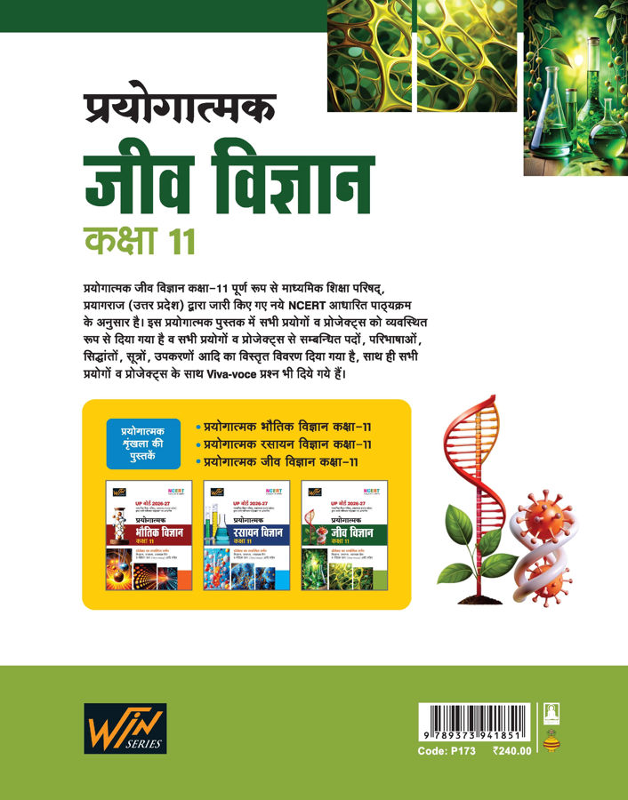 This book is specially designed for Class 11 Practical Jeev Vigyan (Biology) students and is fully aligned with the UP Board 2026–27 latest syllabus and NCERT guidelines in Hindi medium. It provides a clear, structured, and practical explanation of all prescribed experiments and projects, helping students prepare confidently for exams and Viva-Voce.